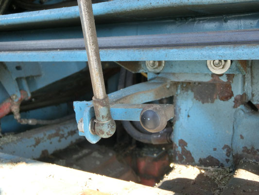 With the older maize headers of types MG 3 to MG 32 and MG 4 to MG 42, the maize plants are still cut using triangular knives that swing back and forth, which, due to a certain pre-tensioning pressure against their counter-blades, sometimes require a lot of force. If this power requirement is too high, the drive shafts may break or, as in the picture shown, the housings may break. It is recommended to check the preload of the pendulum knives and furthermore to reinforce the housing a little.