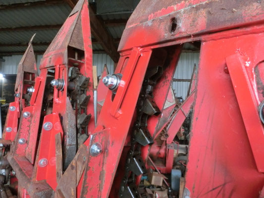 The bevel gears for driving the individual intake chains are fitted with bearings that have to be lubricated once a year using lubricating nipples.