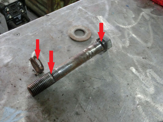 Below we show a modification of the original bolt: This was provided with an off-center 3mm hole into which an M6 grease fitting can be screwed. The lubricating grease can then be pressed into a circumferential groove through a radial outlet hole, which allows the lubricating grease to be distributed all around and thus significantly reduces wear.
