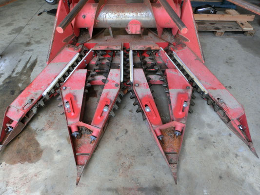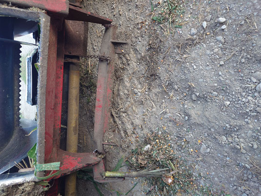 A similar conversion, as described above for the PU 3000, was also carried out on this PU 220: A hinge was inserted into the existing protective bar on both sides and two long rollers were built onto this, which act as crop-guide devices.